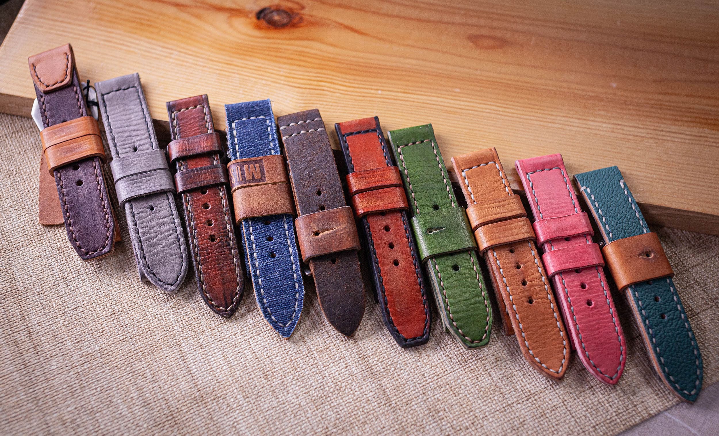 Vintage style straps for Panerai, VDB and other watches, handmade using Italian leather from Tuscan tanneries.